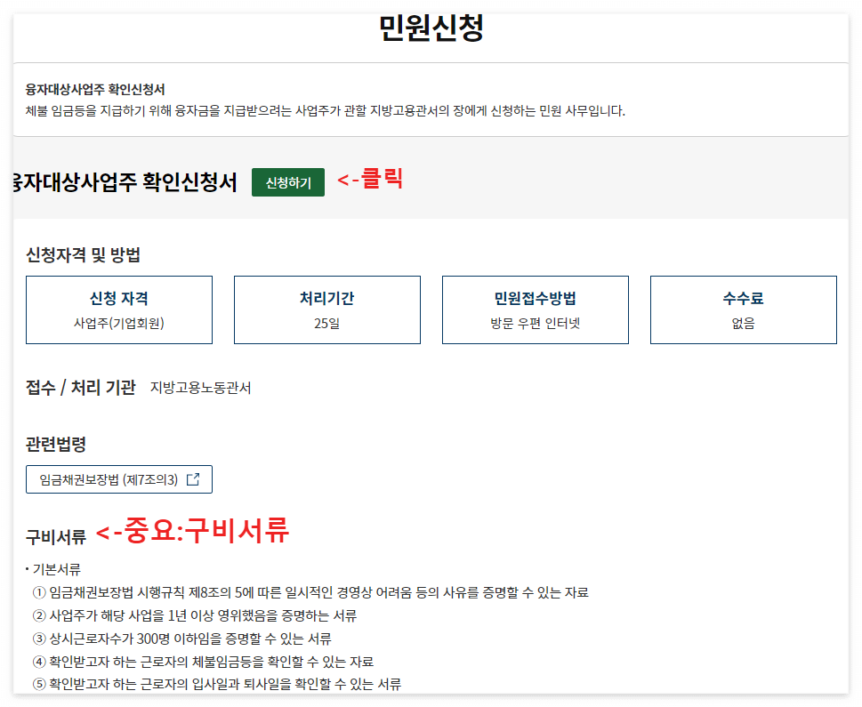 | 임금체불청산지원 사업주 융자신청(1): 신청 절차 (0) | 2024.02.25 |